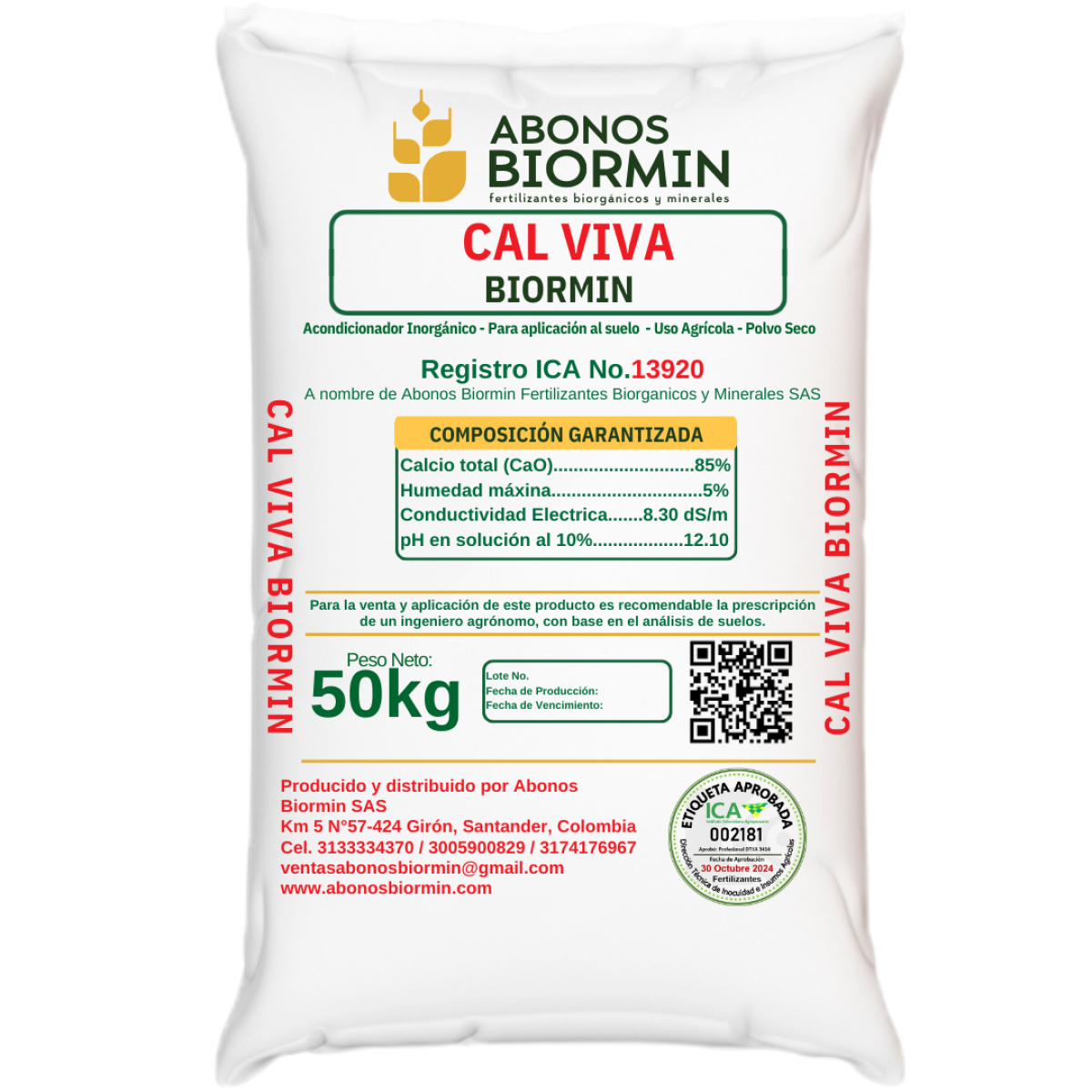 Es la misma piedra caliza o carbonato de calcio, calcinada o quemada en hornos. La cal viva u óxido de calcio es un polvo granuloso blanco o grisáceo de fórmula química CaO obtenido por calcinación (descomposición térmica a unos 900°C) de caliza (CaCO3) según la siguiente ecuación: CaCO3 mineral o roca —> CaO sólido + CO2 gas.