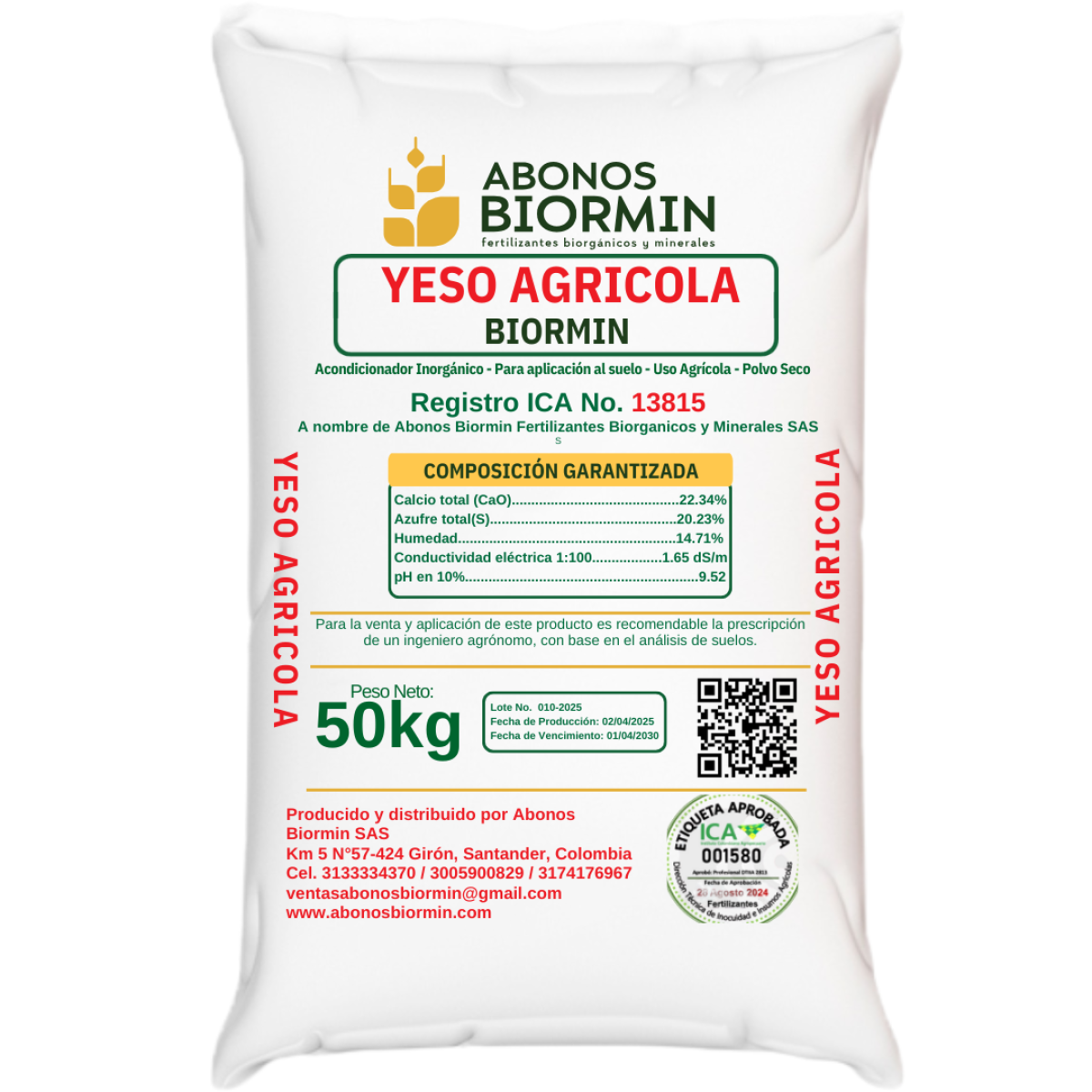 EL YESO AGRÍCOLA O SULFATO DE CALCIO se utiliza como fuente de azufre en palma de aceite, plátano, maíz, café, pastos y toda clase de plantíos en general de climas tropicales. El azufre es la fuente más económica del mercado para maximizar rendimientos de los cultivos.